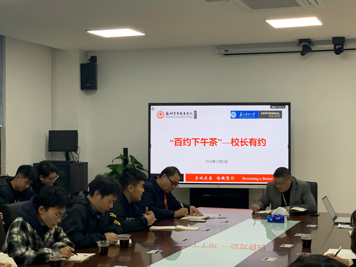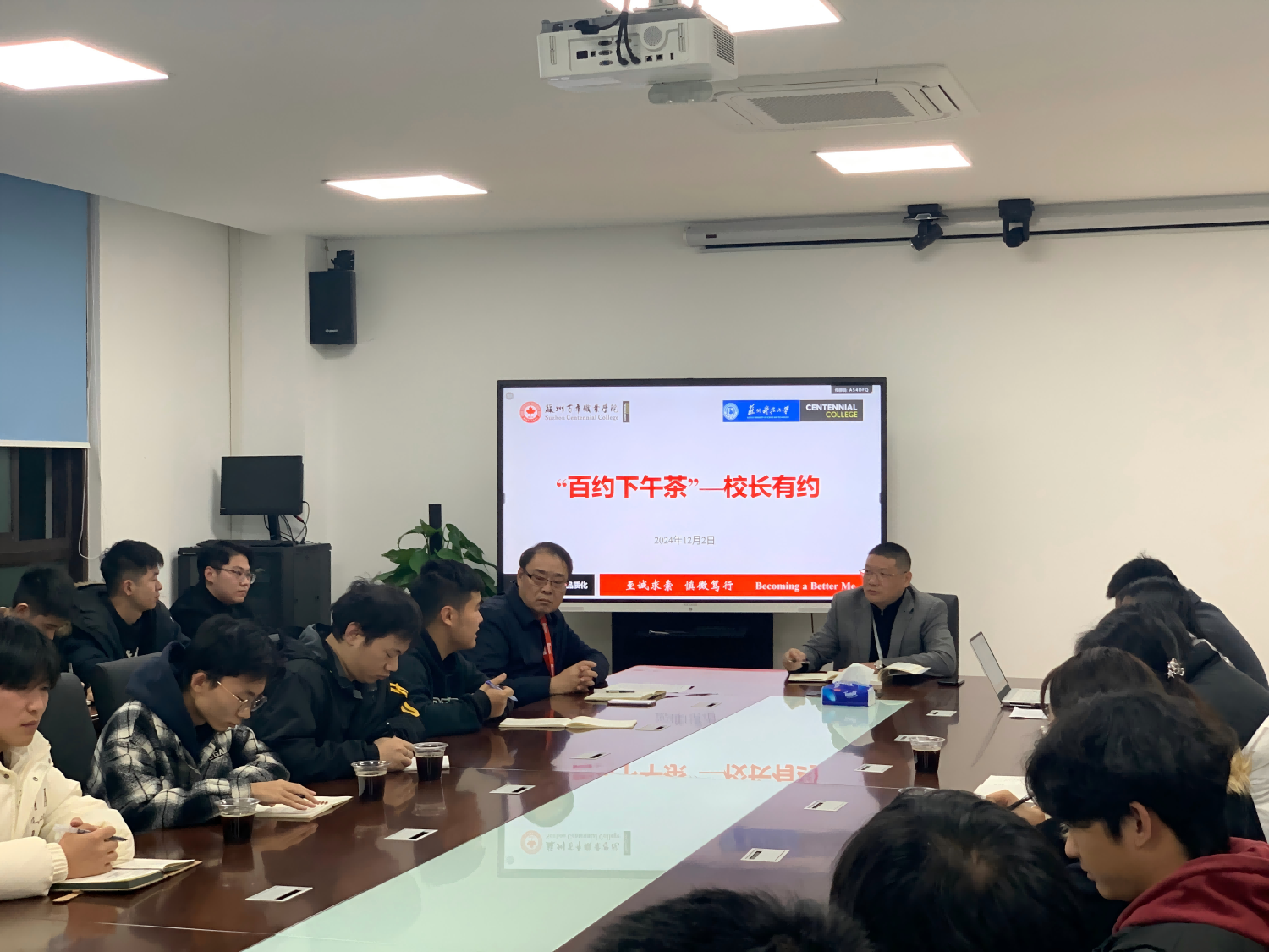 2024年12月2日,9999js金沙老品牌“‘百’约下午茶——校长与你面对面”在至诚楼512顺利举行。校长李世明与40余名学生干部代表进行了面对面的真诚交流,并广泛听取意见和建议。