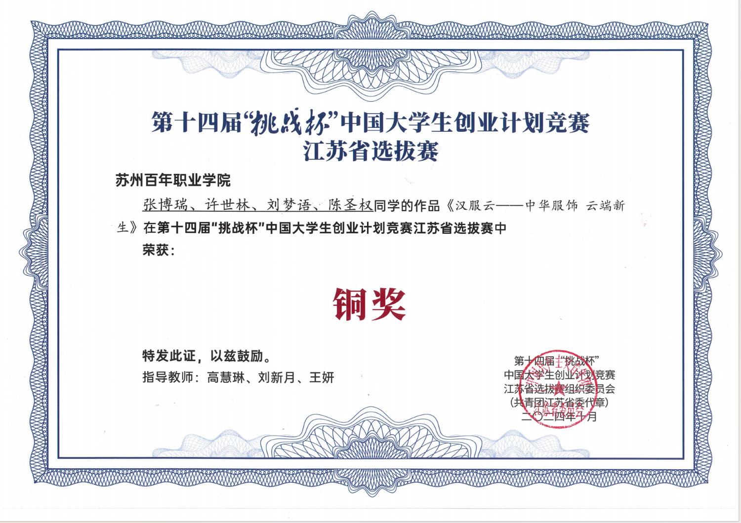 近日,共青团江苏省委、省文明办、省教育厅、省科协、省学联对第十四届“挑战杯”中国大学生创业计划竞赛江苏省选拔赛获奖项目进行了表彰,金沙官网未来工匠学院《心途养老》项目及艺术设计学院《汉服云——中华服饰 云端新生》项目喜获铜奖。