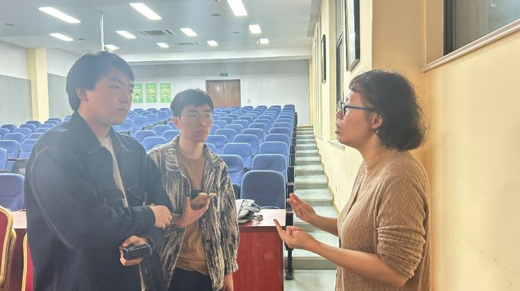 在互动环节,同学们热烈互动,积极提问,问题包括如何平衡传统元素与现代建筑风格之间的关系,如何找寻设计理念的灵感,如何选用环保材料,城市内涝对地铁口的影响,喻新如均作出了细致而专业的回答。