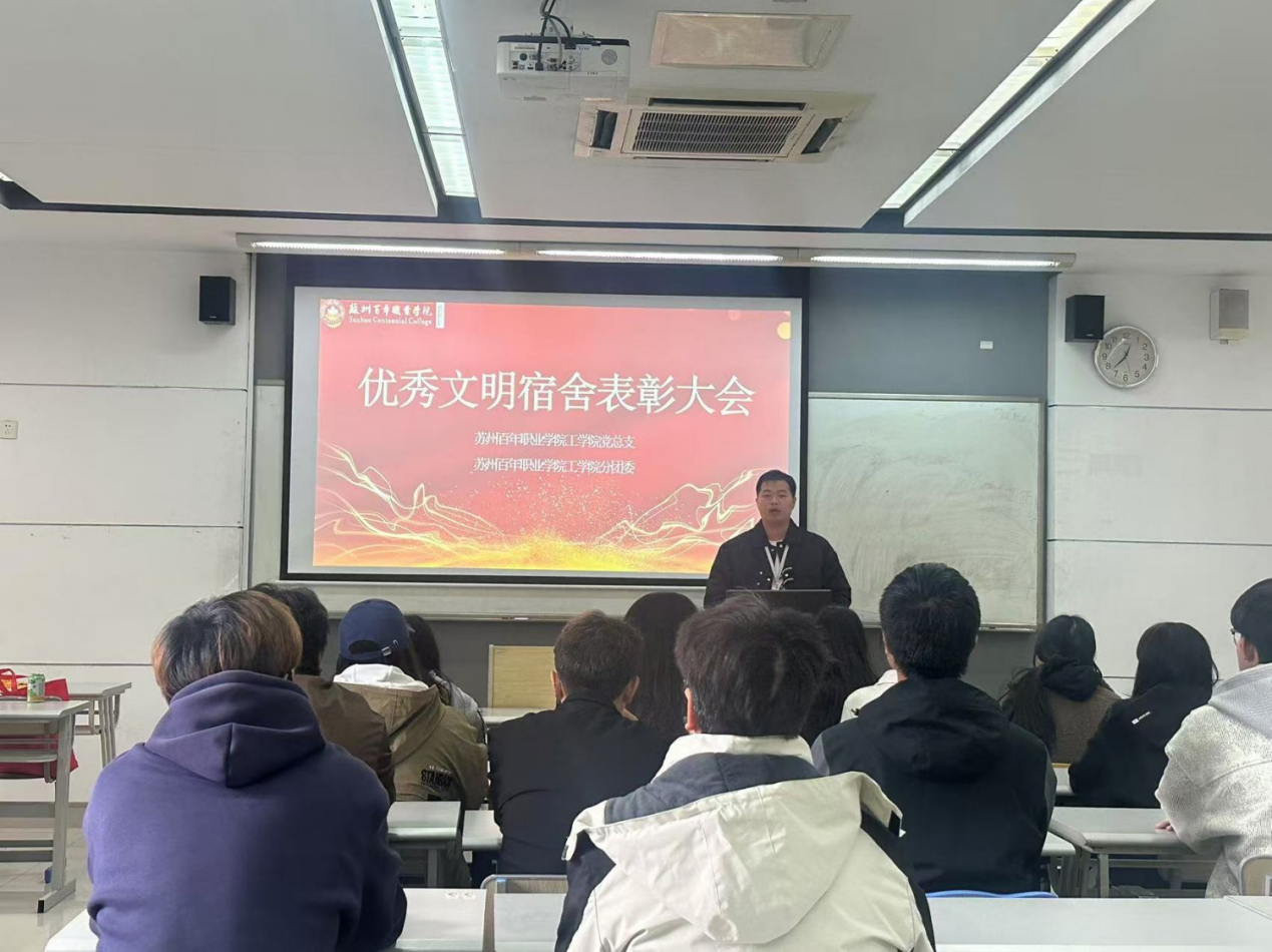 为了加强校园文明宿舍文化建设,营造良好的学习生活环境,提高学生的文明素养,工学院于2024年11月18日下午隆重举行了2024-2025第一学期“优秀文明宿舍”表彰大会,旨在表彰在本学期中积极践行文明行为、营造和谐宿舍氛围的优秀宿舍及个人。
