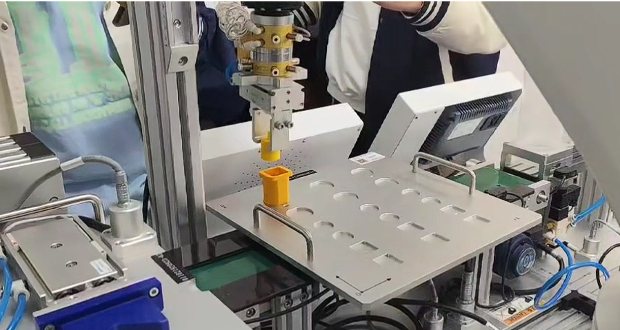 在电机装配环节,学生们需要手动操控机器人完成抓取模拟电机并移动装配的任务。不仅考验了学生对机器人操作的熟练程度,还要求他们具备良好的空间感知能力和手眼协调能力。学生完成情况很好,基本所有小组都能够独立完成操作任务,个别小组需要在教师指导下完成。