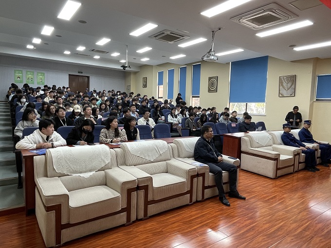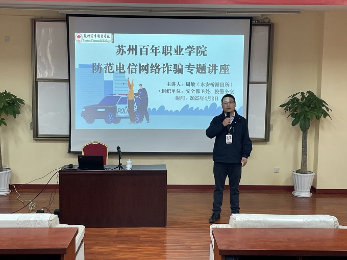 讲座开始前,永安桥派出所民警和独墅湖消防站的官兵们在现场给师生们分发了防范电信网络诈骗和消防安全的宣传册,帮助大家提升防诈和防火意识,筑牢安全防线。讲座中,周敏结合近期学校周边高发的电信网络诈骗案例,详细讲解了“刷单返利”、“裸聊”、“冒充领导”、“虚假贷款”、“杀猪盘”、“冒充客服退款”等常见的诈骗手法,并揭露诈骗分子的作案套路。通过真实案例的剖析,周敏强调,诈骗分子往往利用人们的贪念、恐惧或信息不对称实施犯罪活动,提醒大家务必做到“三不”,即不轻信、不透露、不转账。此外,他还特别提醒大家注意保护个人信息,避免出租、出借银行卡、手机卡及社交账号,以免被不法分子利用,成为诈骗犯罪的帮凶。最后,周敏就学校安全管理中的防火防盗、交通安全、人际关系等问题做了重点强调。