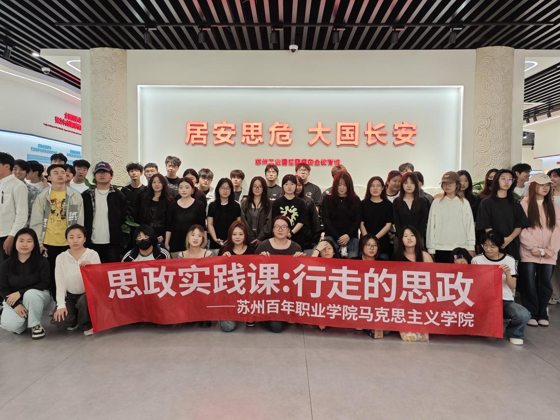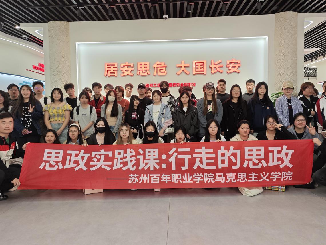 国家安全教育馆内,同学们在李洁老师的带领下,依次参观了多个主题展区。展馆通过图文展板、实物模型、多媒体互动等形式,生动展现了政治、经济、科技、网络等多领域总体国家安全观的具体体现。将思政课堂搬到国家安全教育馆,是推动理论教学与社会实践相结合的重要尝试。课本中的“总体国家安全观”在这里变得具象化,学生能更深刻地理解国家安全与个人发展的紧密联系。参观结束后,学院围绕“青年如何守护国家安全”展开讨论,同学们结合苏州工业园区外向型经济特点,探讨了科技安全、数据安全等新兴领域的风险与应对措施。活动最后,全体师生在主题墙前庄严承诺并合影留念,争做国家安全的守护者与宣传员。此次思政实践课的开展,不仅拓宽了高校思想政治教育的形式,也为培养新时代国家安全青年力量提供了实践平台。