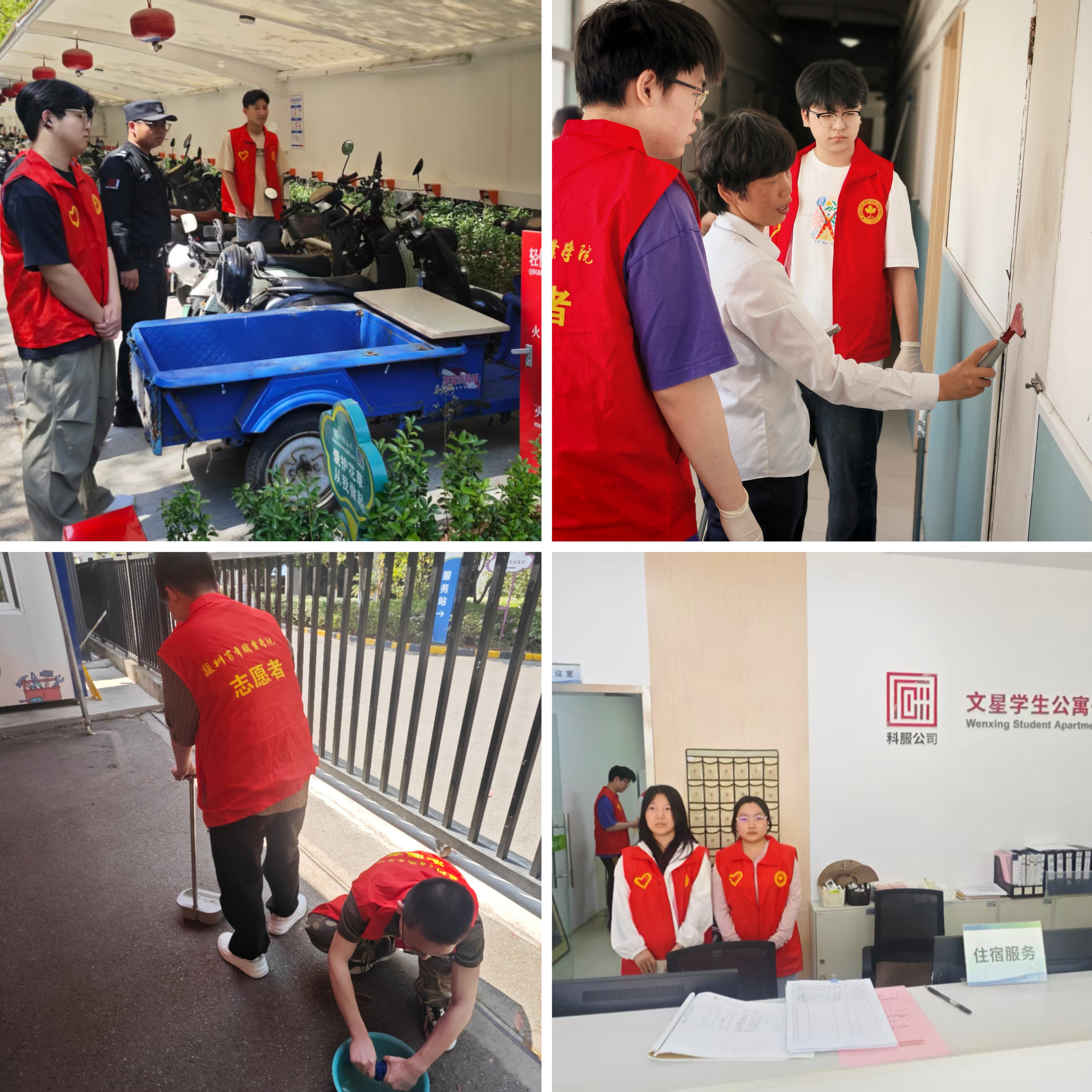 值此五一劳动节来临之际,为弘扬劳动精神,营造整洁、安全、和谐的宿舍环境,4月29日,金沙官网商学院联合文星物业共同举办“劳动焕新宿舍,志愿温暖五一”主题志愿服务活动。36名志愿者以实际行动践行劳动教育,对文星公寓宿舍区进行环境整洁与安全隐患排查,取得显著成效。
