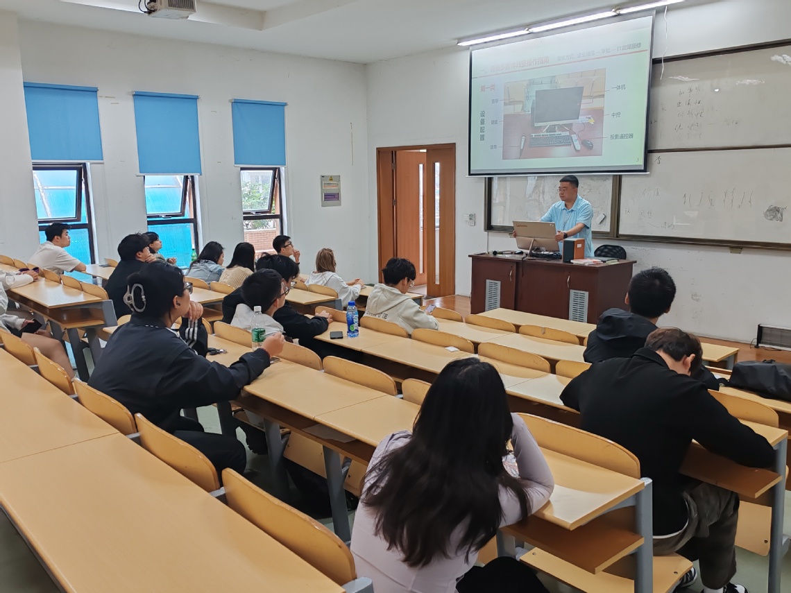 培训会上,王宏皓老师向同学们全面介绍了教学设施设备的物理构件、工作原理和教室使用申请步骤,详细讲解了教学设施设备的正确操作流程和常见故障的诊断、处理方法及注意事项等内容。同时,还就规范使用与管理教学设施设备提出了明确要求。