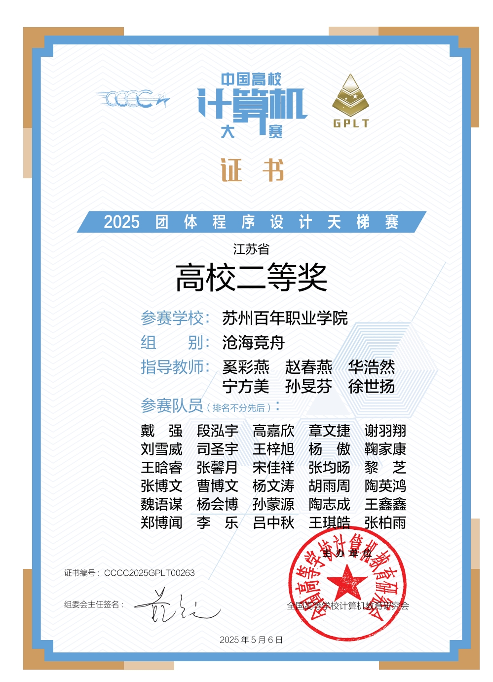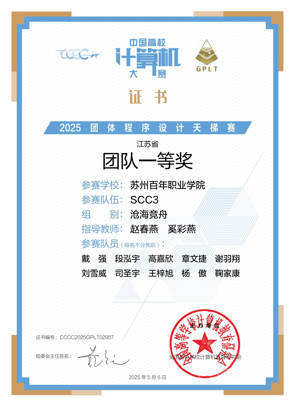 2025年4月19日,“中国高校计算机大赛-2025团体程序设计天梯赛”圆满落幕。金沙官网工学院组织学子参赛,经过激烈角逐,最终斩获“沧海竞舟”组江苏省团体一等奖及江苏省高校二等奖的优异成绩,充分展现了金沙官网在程序设计领域的强劲实力与团队协作精神。