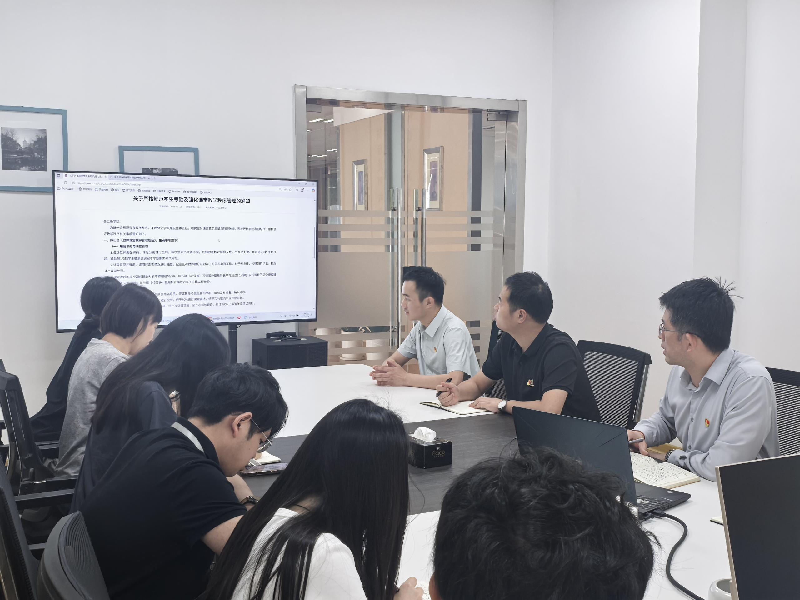 为贯彻落实学校《关于严格规范学生考勤及强化课堂教学秩序管理的通知》要求,工学院于5月13日通知发布后立即行动,全面强化学生考勤与教学秩序管理。