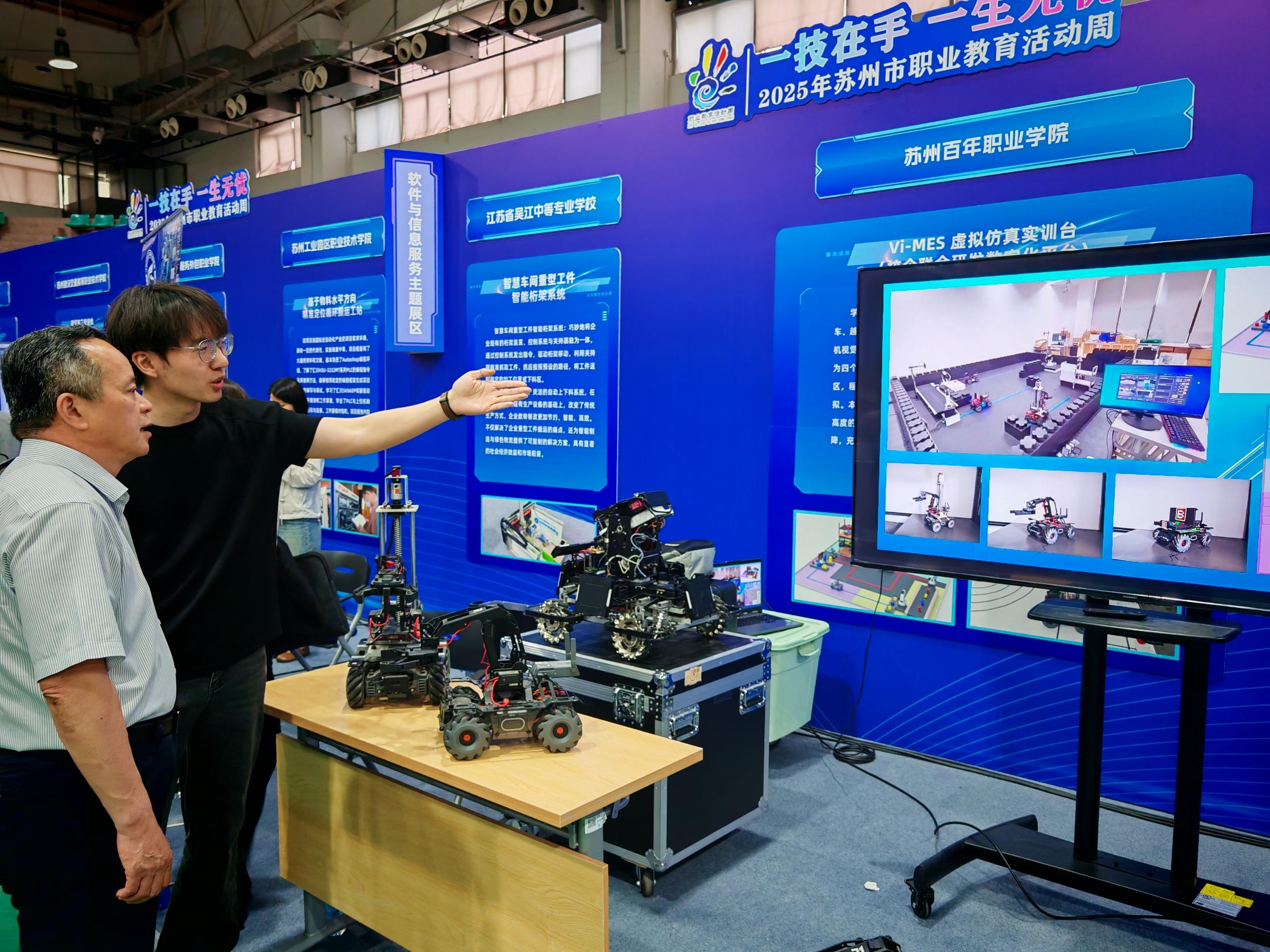 5月13日下午,以“一技在手,一生无忧”为主题的2025年苏州市职业教育活动周启动仪式在苏州市职业大学隆重举行,苏州市副市长刘博等领导出席,金沙官网沈宗根副校长带队参加,共同见证了这场职教盛会,并亲临现场观看和指导金沙官网展品。