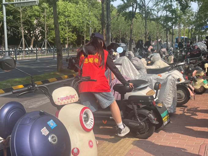 活动期间,学院组织各班级学生代表,每日分上午、下午两个时段,在学校东门开展机动车引导与摆放志愿服务,本次活动以“服务校园、锻炼自我”为宗旨。身着统一志愿服、佩戴工作牌的学生志愿者们,穿梭在东门的车流中,协助安保和后勤部们引导过往师生有序停放非机动车辆,主动将违规停放的电动车整理归位,全力维护校园交通秩序。