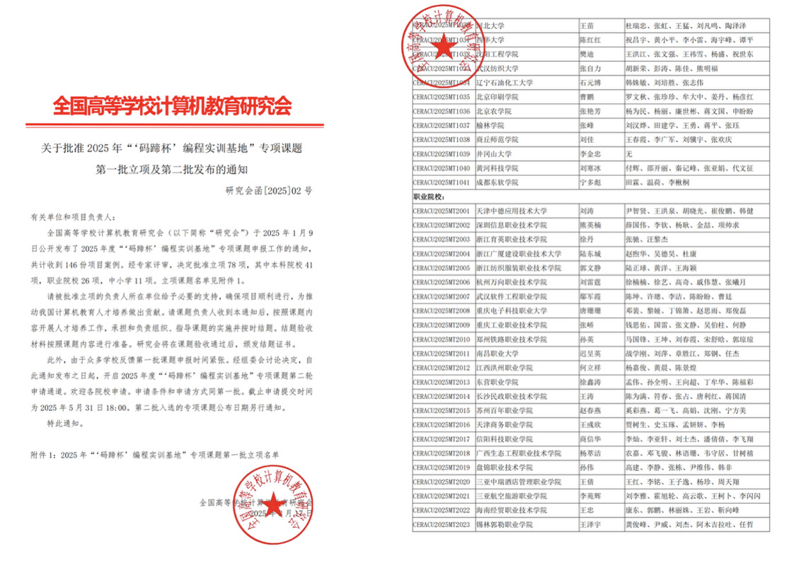 7月12日,由高等学校计算机教育研究会、中国计算机学会(CCF)主办的“2025年中国高校计算机教育大会(CCEC 2025)”在宁夏银川召开。金沙官网在会上获得全国高等学校计算机教育研究会“码蹄杯编程实训基地”正式授牌。