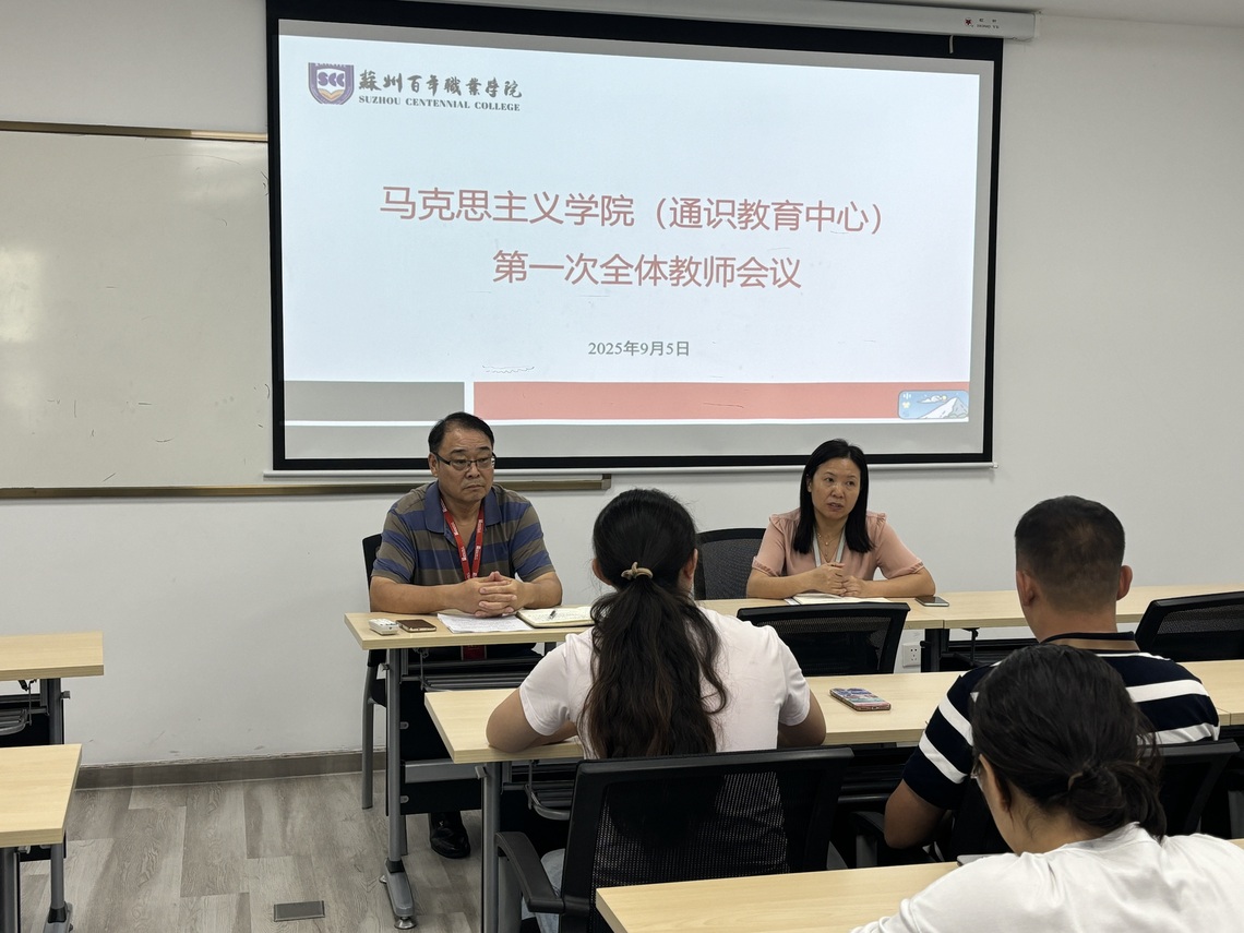 2025年9月5日下午,马克思主义学院(通识教育中心)在显荣楼204室召开秋季学期第一次全体教师会议。会议由学院院长江海珍主持,学院全体教师参会,校党委副书记、纪委书记鲁伟出席会议并讲话。