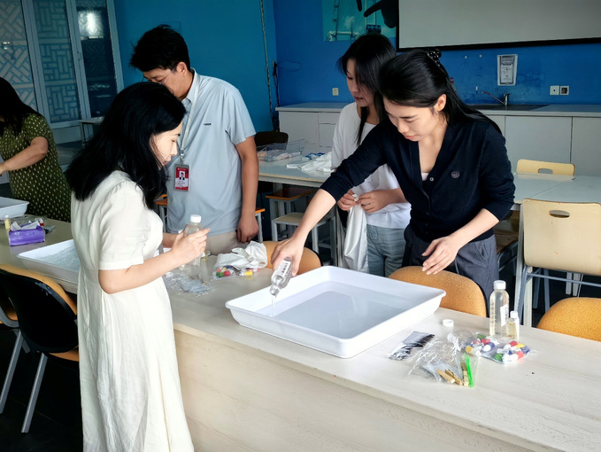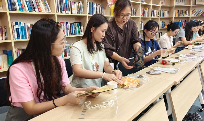 巧手生花,陶冶情趣。校工会还特别组织了“扇·染师恩,丝·情画意”非遗主题手工体验活动。老师们暂时放下繁忙的工作,在专业指导下体验了丝巾晕染、珍珠团扇制作,在动手创作中放松身心,感受艺术的魅力与欢乐,进一步增进了彼此的沟通交流。