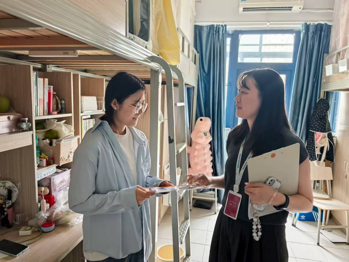 走访过程中,辅导员们分组前往各年级宿舍,与同学们面对面交流,重点围绕宿舍安全、出勤要求、生活习惯、学业规划等方面展开细致询问与指导。对于低年级学生,辅导员耐心解答同学们关于课程安排、社团选择等方面的困惑,并鼓励大家尽快适应大学生活,建立良好作息,积极参与校园活动。对于高年级学生,辅导员则重点关注实习就业准备、毕业设计进展等情况,提醒同学们合理规划时间,抓住关键阶段。