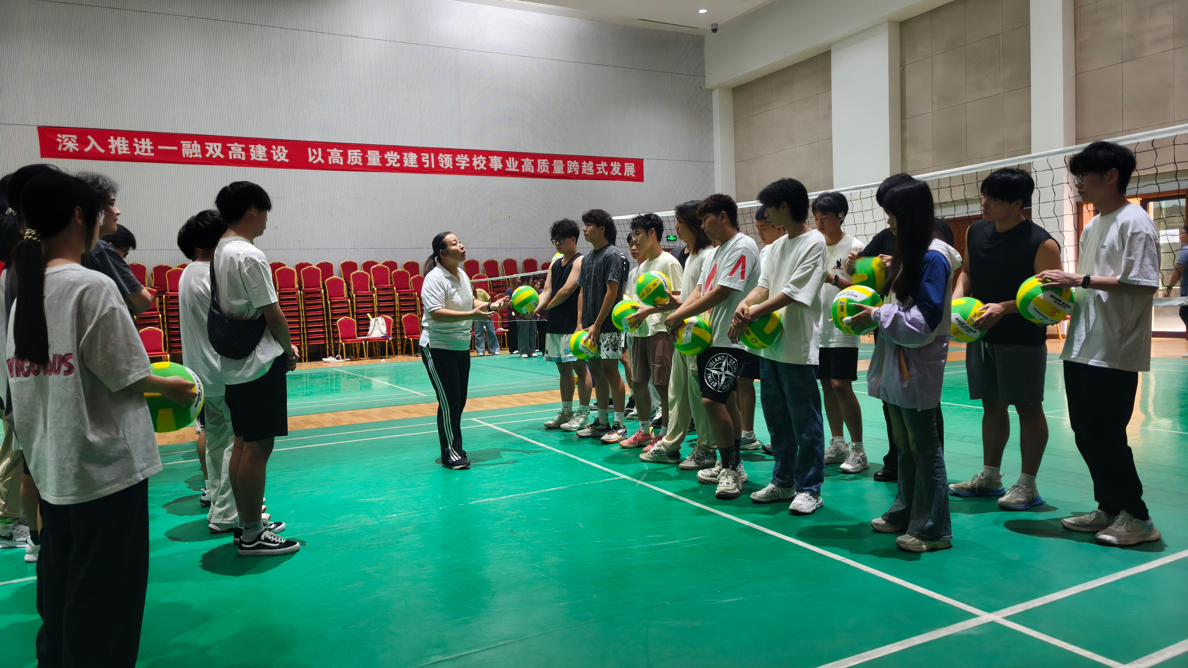 活动中,于教练系统讲解气排球基础规则与场地知识,并同步结合实战演示传球、垫球等核心技巧。金沙官网排球社成员专注聆听,踊跃提问,双方成员深入探讨了气排球训练方法。实战环节,两校成员组队展开对抗,切磋球技,现场气氛热烈欢快。期间,外包学院向金沙官网排球社捐赠专业气排球20个。