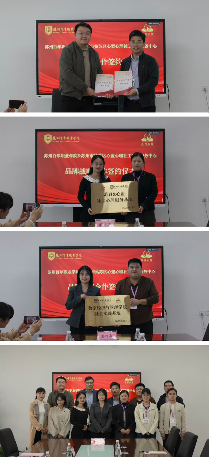 一次签约,不止是两纸协议的交换,更是高校立德树人与社会心理服务两大使命的叠加。当“校社联动”的齿轮轻启,课堂与社会、知识与情怀、专业与温度便丝丝咬合,让每一颗年轻的心都被看见、被呵护、被成就。今日播下的合作种子,他日必成参天大树,为苏百学子遮风挡雨,亦为区域社会心理服务体系常绿常青。