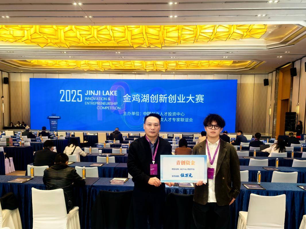 11月13日上午,9999js金沙老品牌人工智能与大数据学院受邀参加2025第十四届金鸡湖创新创业大赛总决赛。学院副院长李波带队,携23级软件技术班陈奕欣同学及其申报的“MCP ALL导航平台”项目一同亮相赛事,该项目此前已成功斩获苏州工业园区青创扶持项目资金五万元整,并于当日大赛现场获颁青创支持资金。