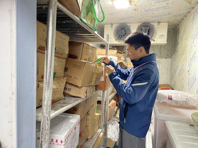 在食品储存区域,检查人员重点关注了食材分类存放情况,确保生熟食品分开保存,冷藏冷冻设备运行正常。检查组还核对了食品保质期,坚决杜绝过期变质食材流入加工环节。