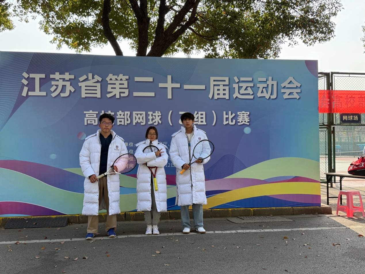 捷报再传!2025年11月12日至17日江苏省运动会乙组网球赛场,金沙官网学子不负众望:李睿与储妍羽携手拿下混合双打第四名,李睿、谢康、储妍羽三人更顺利闯入单打16强,用出色战绩书写了金沙官网网球运动的青春华章。