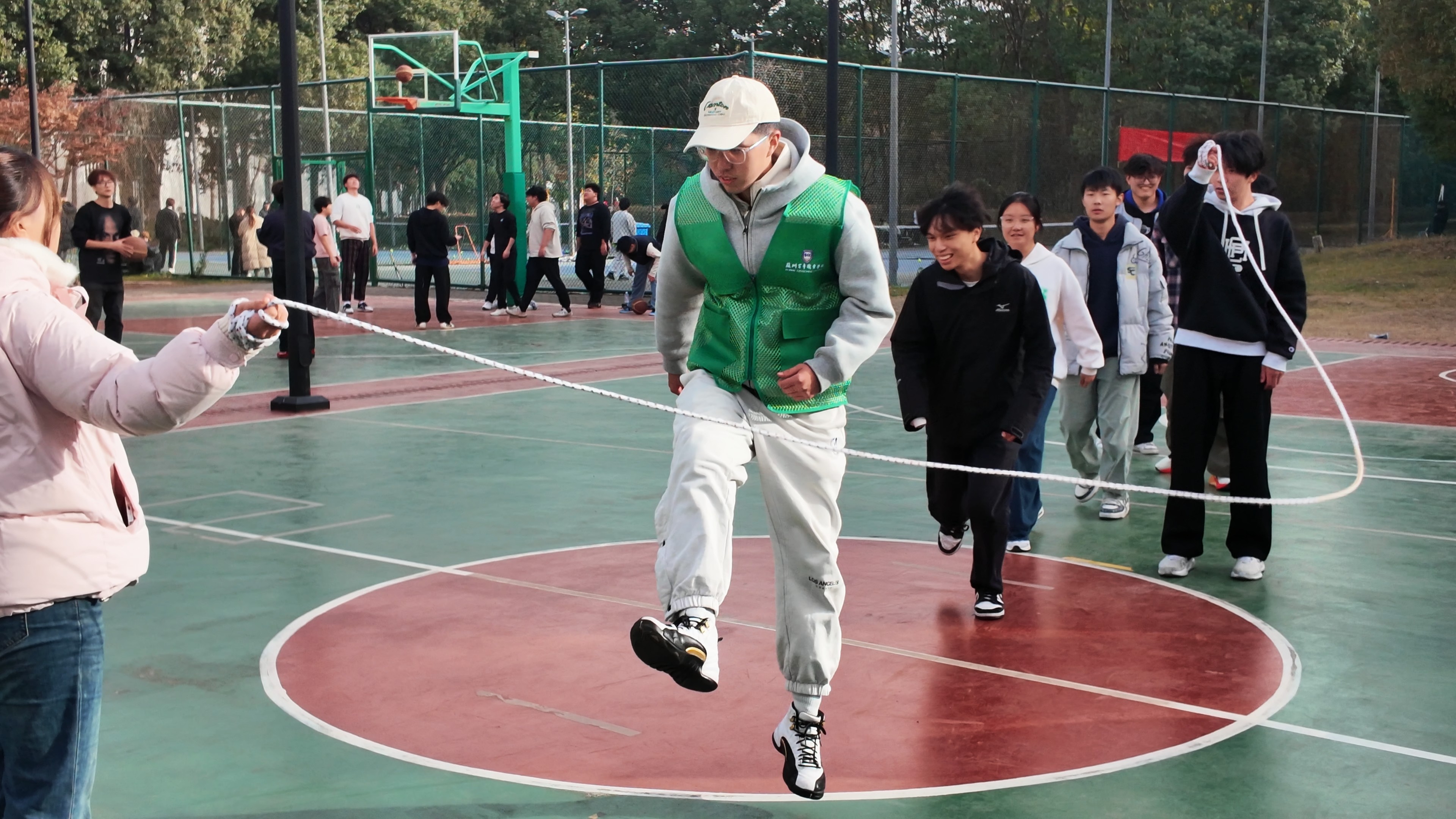 这是一场速度与默契的考验,长绳翻飞,队员们如游龙般穿梭,划出流畅的“8”字轨迹,精准的节奏、无缝的衔接,完美诠释了团队协作的高效与美感。来自辅导员舒香老师的“兄弟队”取得“8”字跳绳冠军。