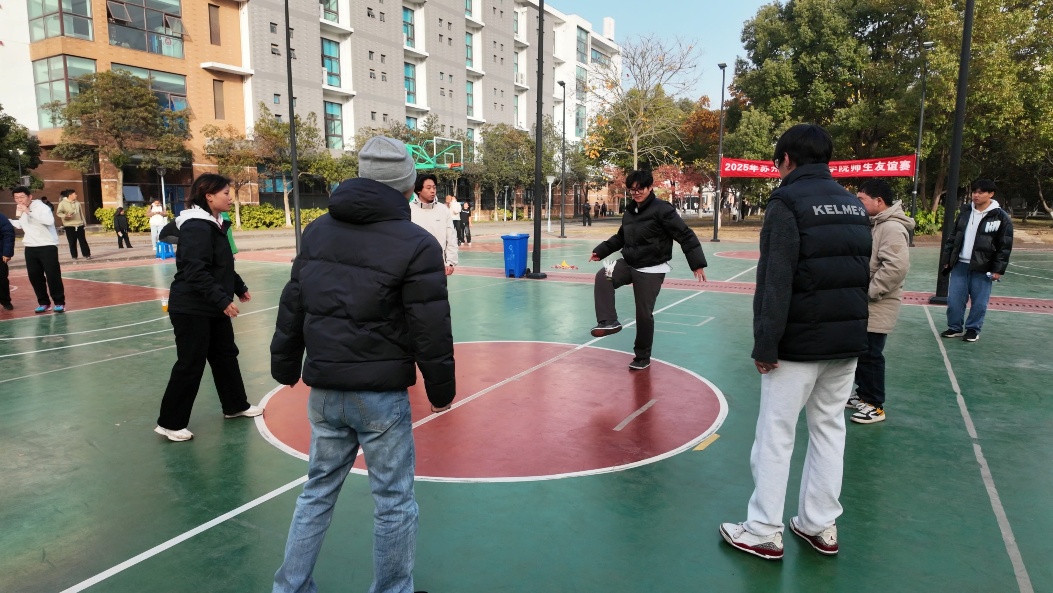 该项目要求团队成员在移动中共同完成踢毽任务,极大地考验了队员间的配合与协调,每一次毽子的精准传递与起落,都展现了别样的技巧与默契。来自辅导员王熠老师的“踢到你的心巴上队”获得同心踢毽冠军。