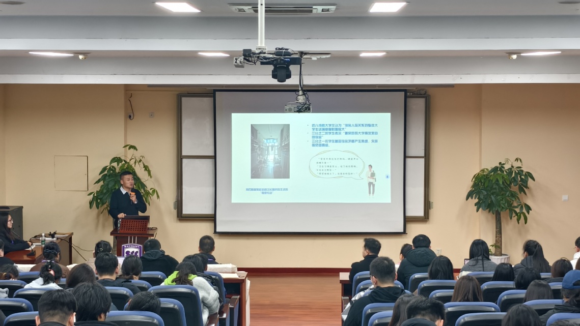 本次讲座特邀苏州科技大学心理健康教育中心霍鹏辉老师担任主讲,他以大学生宿舍相处中的典型案例为切入点,深入剖析了宿舍矛盾的根源,并从“沟通技巧”和“冲突化解”两个方面展开分享。讲座采用情景模拟等生动活泼的形式,引导学生学会尊重差异、包容彼此,并掌握“主动表达法”等实用策略,有效化解宿舍矛盾。