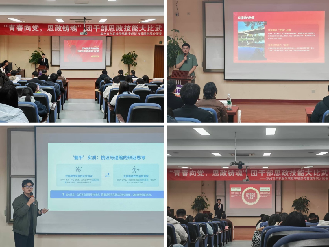 为深入学习贯彻习近平新时代中国特色社会主义思想和党的二十届四中全会精神,切实提升团干部思想政治工作能力与综合素养,数字经济与管理学院分团委近日举办了2025年秋季“青春向党,思政铸魂”团干部思政技能大比武活动。学院党总支副书记、副院长卜少康,分团委书记闫阿伟,辅导员张菁、陈磊、张跃及全院100余名团支书及学生干部参与了本次活动。