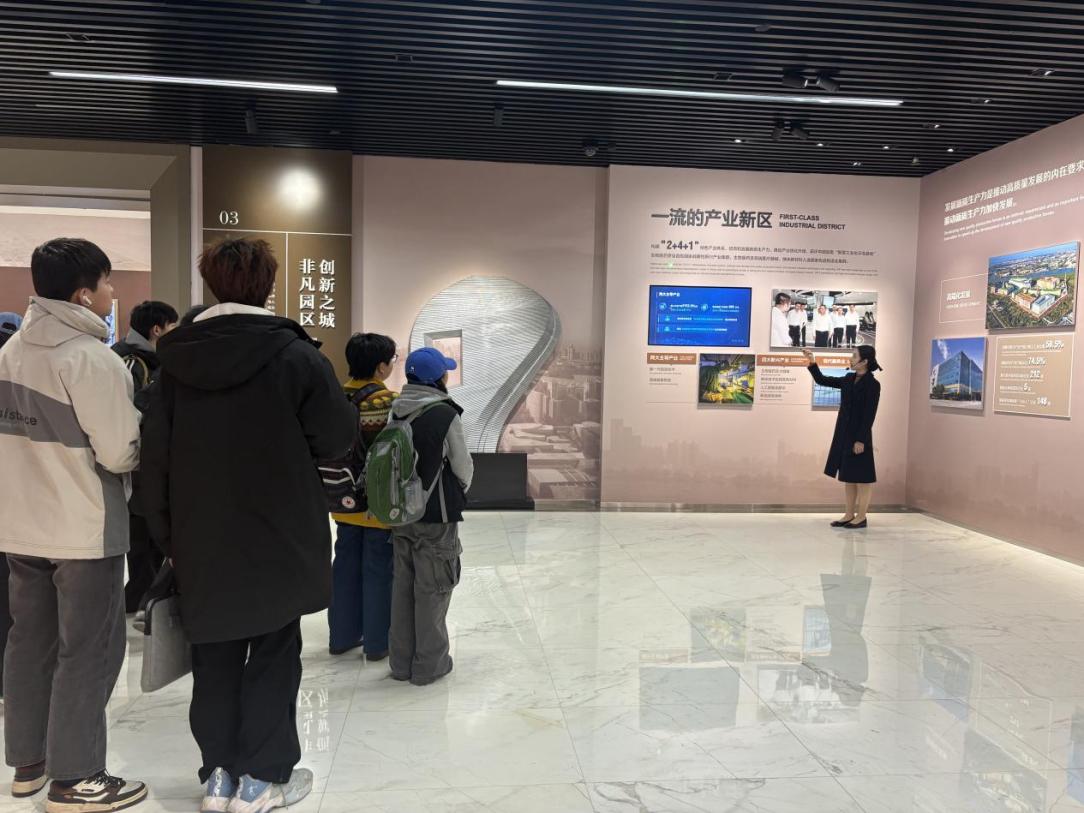 规划馆独特的建筑设计、精致的园区模型与富有艺术感的展陈设计,给同学们带来了一场视觉与美学的熏陶。许多同学在记录园区产城融合、绿色生态的规划理念时,也深深感受到科技园区建设中蕴含的人文关怀与美学追求。
