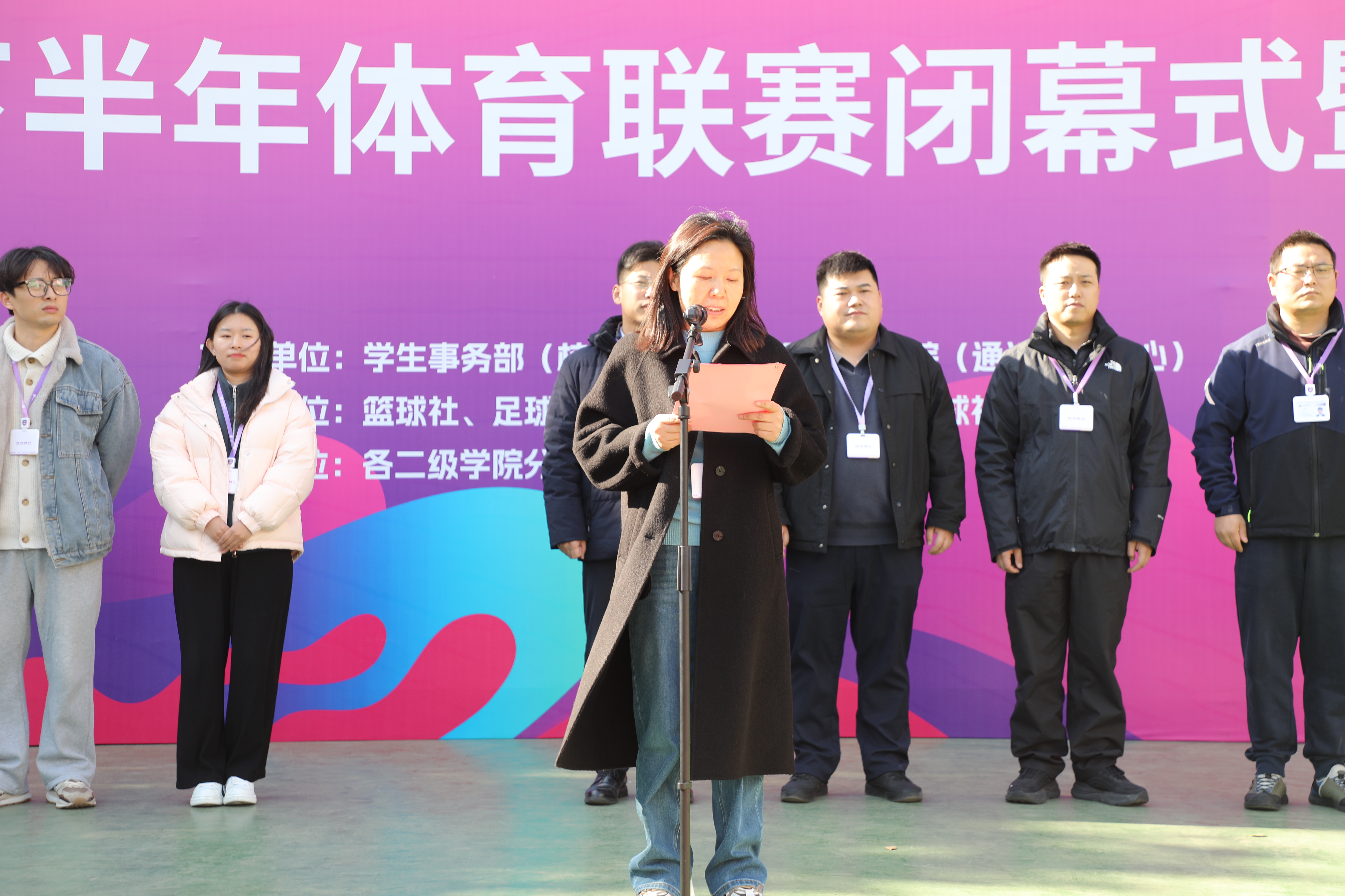 12月15日中午,金沙官网2025年秋季学期体育联赛闭幕式暨颁奖典礼在学校篮球场举行。校长助理袁祥,学生事务部(安全保卫部)主任胡赛,马克思主义学院(通识教育中心)院长江海珍,各二级学院党总支副书记、学生支部书记、全体辅导员等出席活动。伴随着庄严的国歌声,闭幕式正式拉开帷幕。