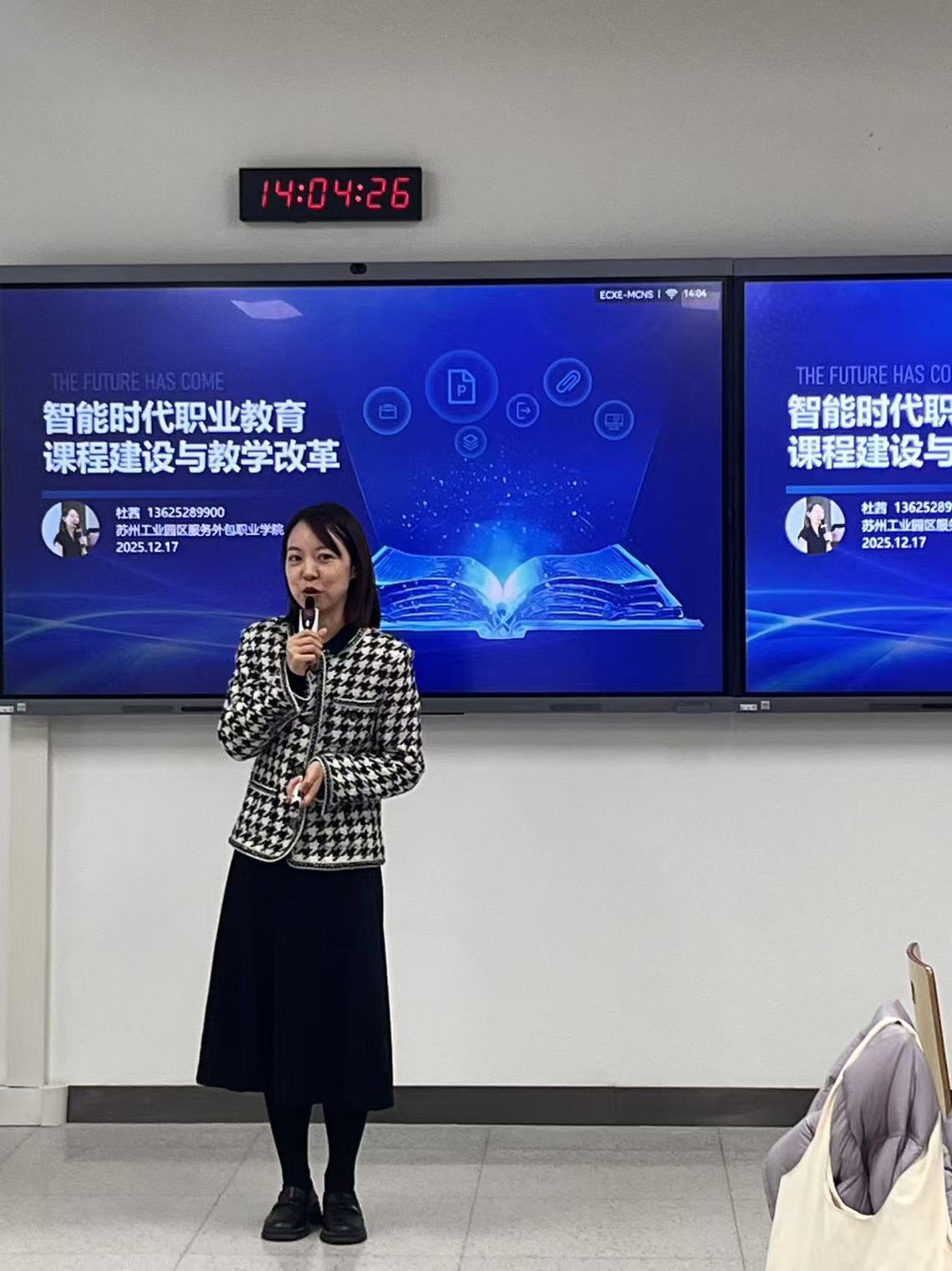 12月17日,数字经济与管理学院协同教学事务部共同举办了“智能时代课程建设:课程建设与教学改革”专题报告会,苏州服务外包职业学院商务管理学院副院长杜茜教授担任主讲嘉宾,各学院青年骨干教师齐聚一堂,共探人工智能浪潮下职业教育教学改革新路径。