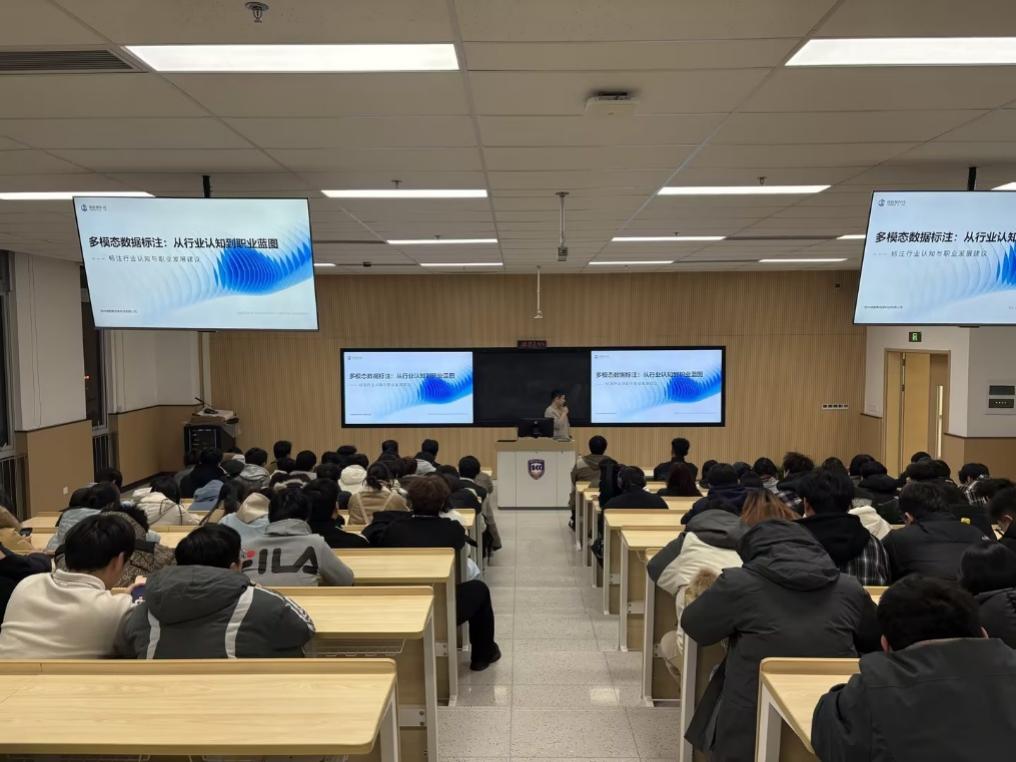 随着人工智能产业化进程加速,多模态数据标注作为AI模型训练与算法落地的基石,已成为支撑自动驾驶、智慧医疗、内容生成等关键场景的核心环节。12月15日,人工智能与大数据学院邀请苏州核数聚信息科技有限公司技术专家来校开展以“多模态数据标注:从行业认知到职业蓝图”为主题的讲座,为学院学子们带来了一场理论与实践深度融合的行业洞察。