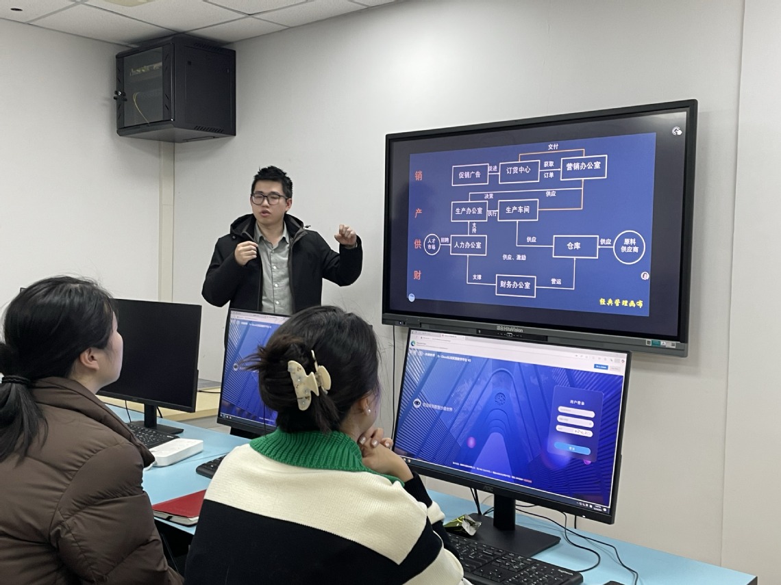 引入新道“数智企业经营管理沙盘”,是学院深化产教融合、创新实践教学模式的重要举措。该沙盘模将抽象理论转化为可感知、可操作的决策场景,极大地激发了学生的学习兴趣与商业潜能,切实提升数据思维、财务素养和团队协作能力,为培养适应数字经济发展的高素质技术技能人才奠定了扎实基础。
