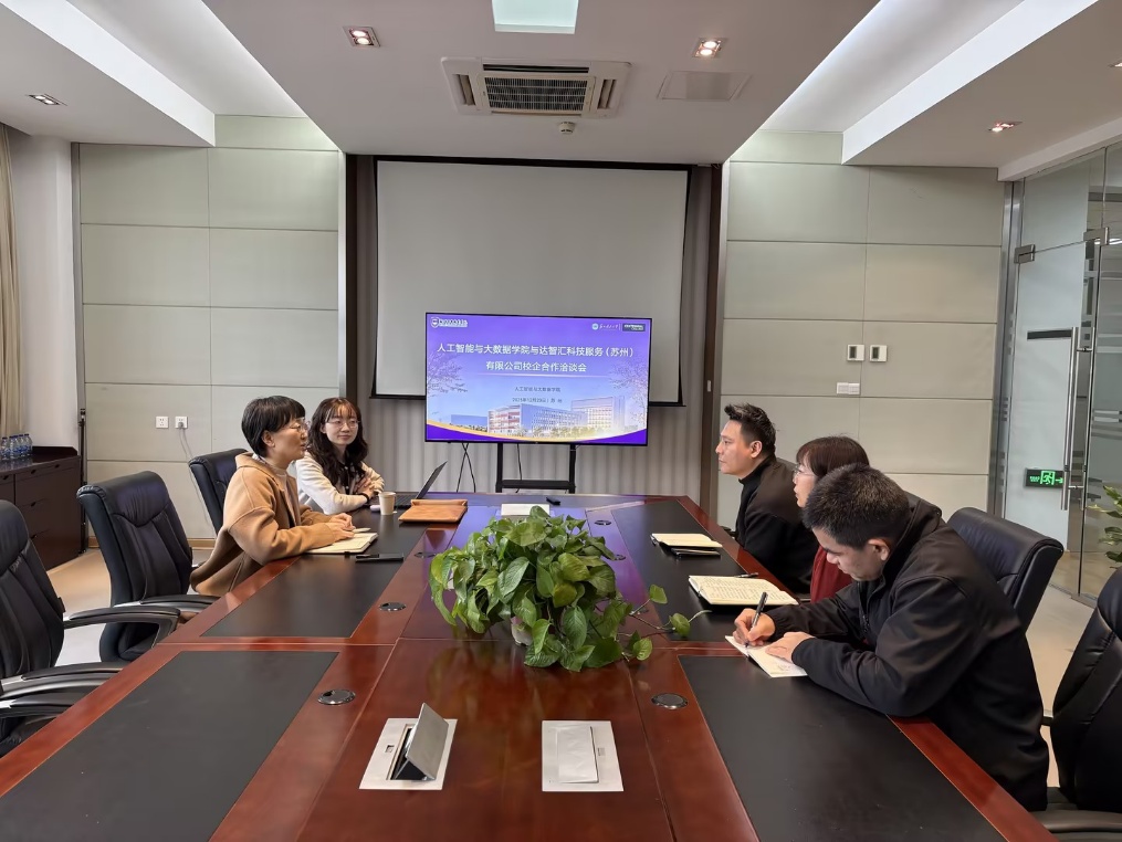 12月23日,金沙官网人工智能与大数据学院与达智汇科技服务(苏州)有限公司举行校企合作洽谈会,共同围绕人工智能技术在教学实训、课程共建、人才培养等方面深入交流,探索产教融合新模式。达智汇科技服务(苏州)有限公司副总经理陈佳颖,人工智能与大数据学院副院长(主持工作)牟晋娟、副院长李波、曹晓娜及相关教师代表出席会议。