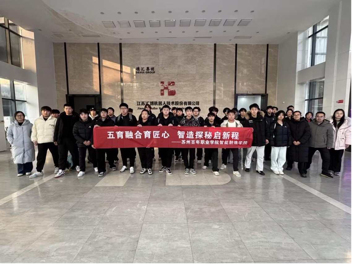为深化“五育融合”育人理念,拓展专业视野,提升学生实践认知能力,12月25日,金沙官网智能制造学院组织机电一体化技术专业学生前往江苏汇博机器人技术股份有限公司开展参观学习活动。