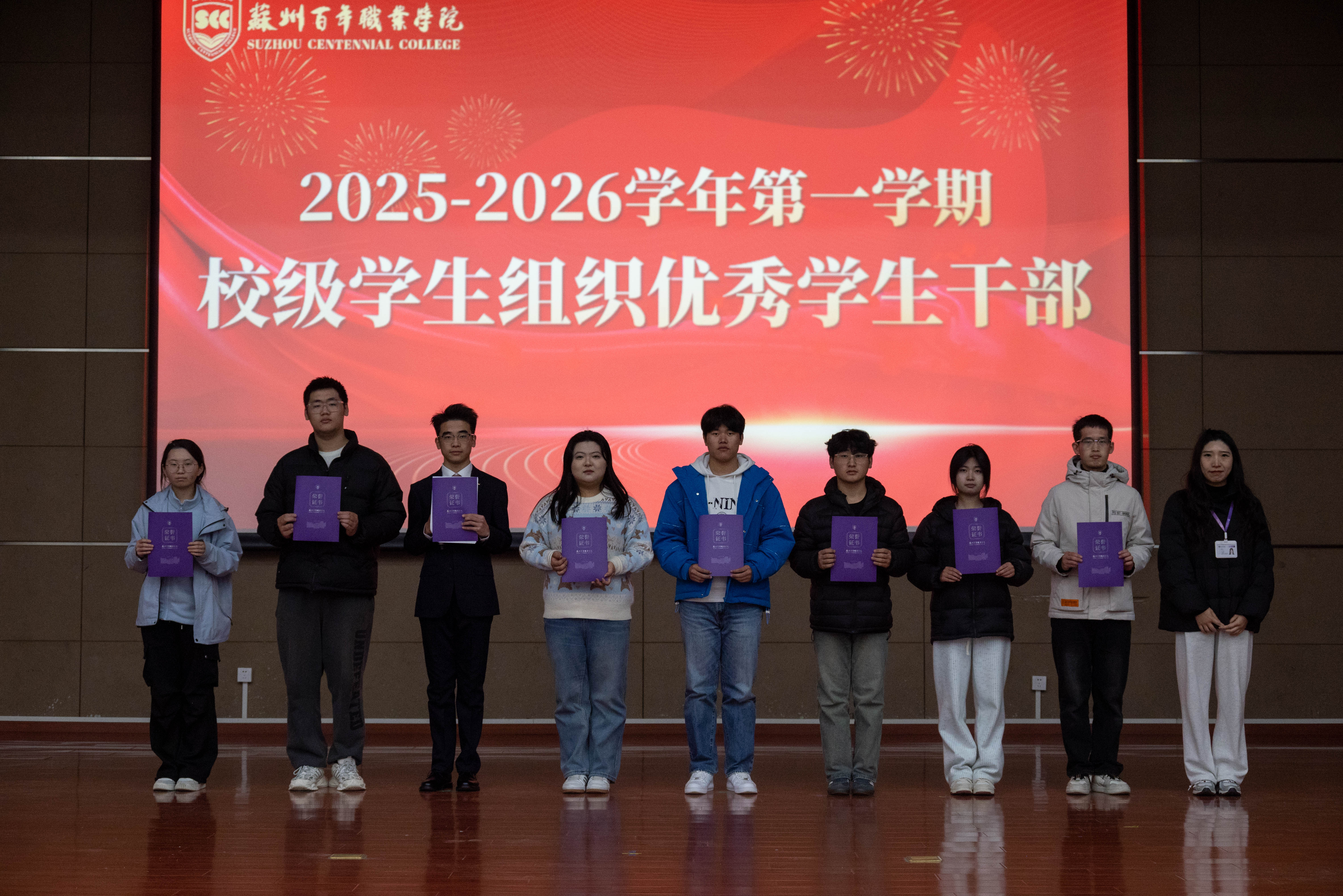 大会在庄严的国歌声中拉开序幕,校团委副书记陈永超宣读《关于表彰2025-2026学年第一学期校级学生组织先进个人的决定》,与会老师为获评“优秀学生干部”“优秀志愿者”“优秀文艺骨干”的同学颁奖,获奖同学依次上台接受表彰,现场掌声不断、氛围热烈。
