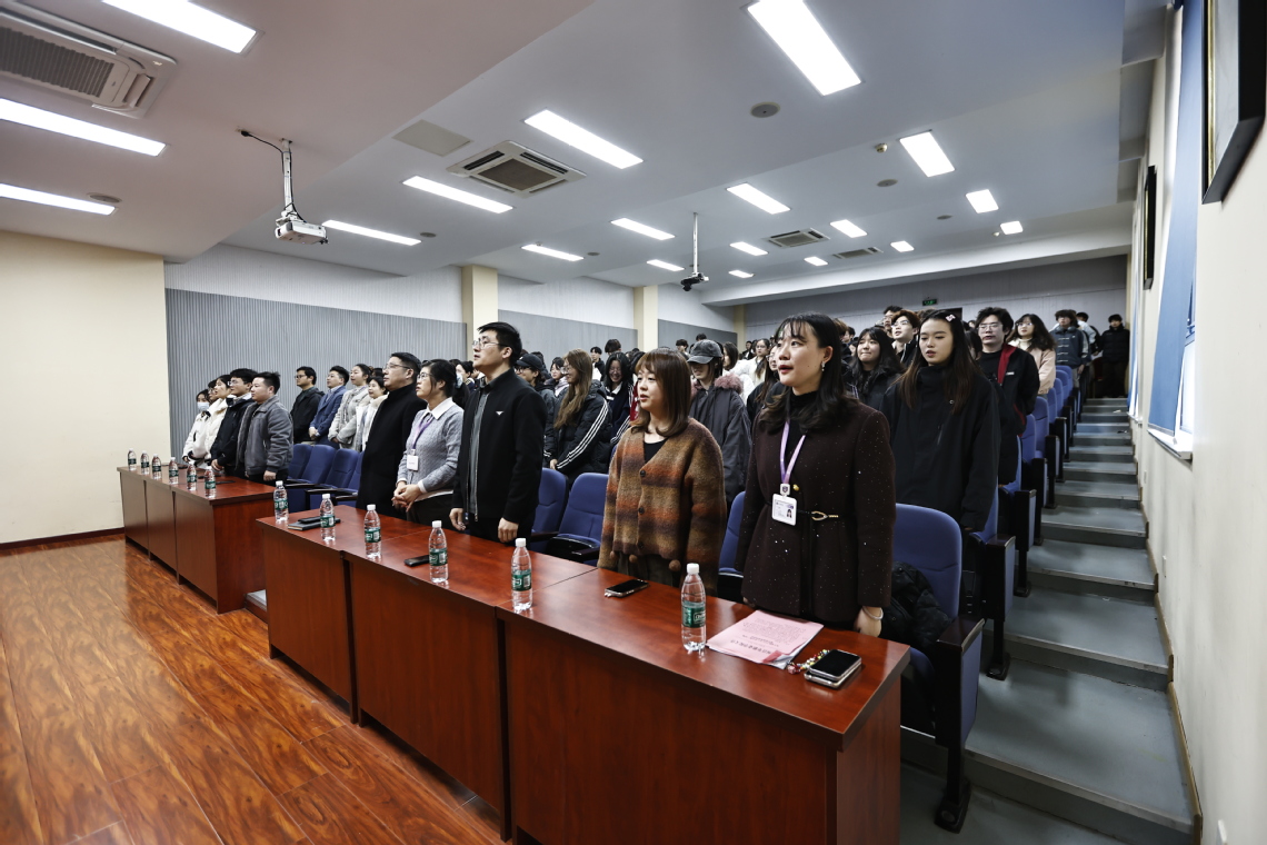 在庄严的国歌声中,表彰大会正式开始。胡峪谷宣读表彰决定,涵盖学业类、活动类、综合类及集体荣誉类四大奖项,对获奖集体与个人的优异表现予以充分肯定。