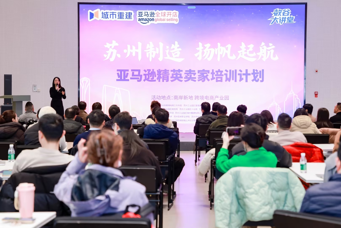 1月16日,“亚马逊精英培训计划”大师课堂在阳澄数谷·南岸新地成功举办。本次活动聚焦跨境电商前沿运营与选品策略,吸引了众多企业代表与行业从业者参与。此次研学数字经济与管理学院数字商贸、数智管理教研室的七位教师全程参与,以服务课程建设、赋能学科竞赛、明晰学生职业发展方向为目标,开展深度行业对话。