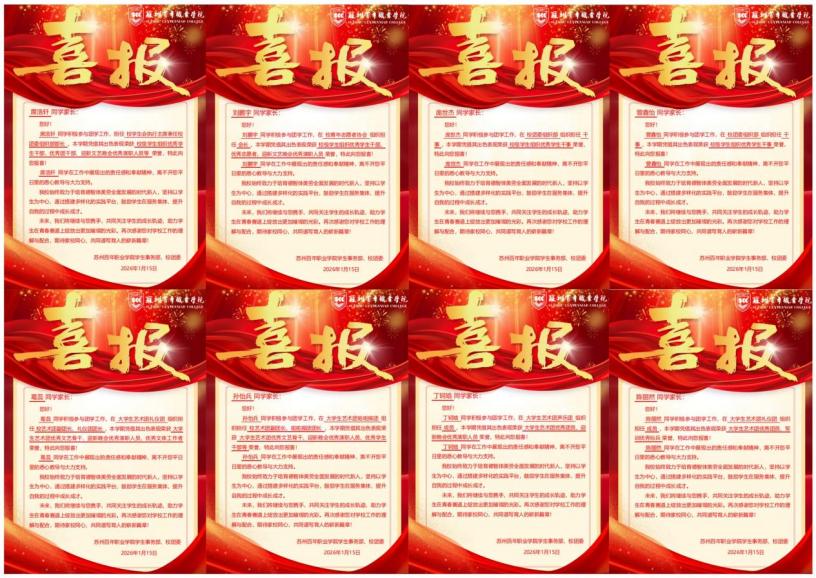 将荣誉以喜报的形式寄送至学生家庭,是学校落实“五大中心”建设和“三走进”工作走深走实的具体实践,也是深化家校协同育人机制的重要举措。通过这种温情的方式,学校与家长之间搭建起一座情感共鸣的桥梁,让教育的温度在家庭与校园之间流转。未来,金沙官网将继续探索家校共育的新路径、新方法,以更多元、更贴心的形式加强与家长的沟通联动,共同为学生营造积极向上、全面发展的成长环境,让每一位学生都能在家庭与学校的共同呵护下,绽放属于自己的光彩,成长为有理想、敢担当、能吃苦、肯奋斗的新时代好青年。