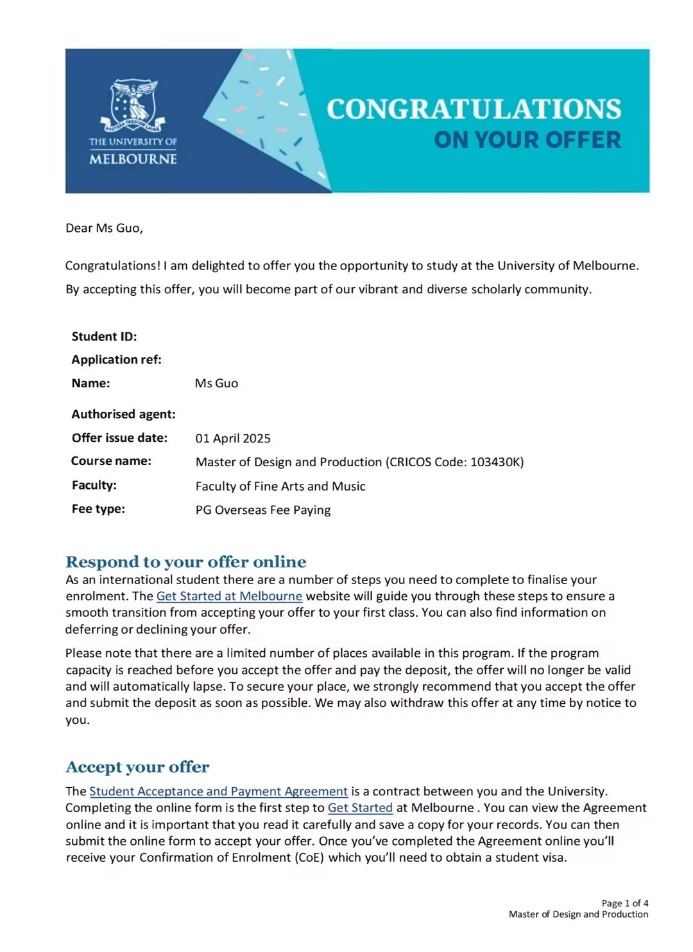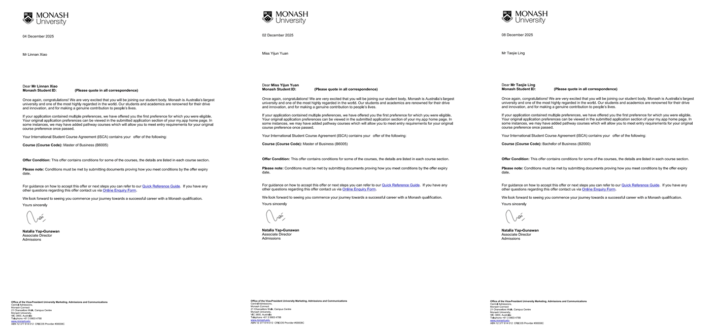 以下为金沙官网学子成功升读澳大利亚高水平大学的代表性案例,涵盖商科、设计、信息技术、航空等多个方向,充分展现了苏百多专业协同发展的国际升学成效。