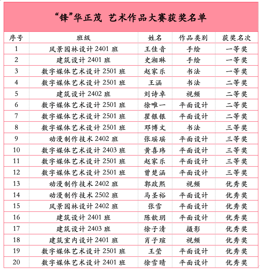 致敬每一份用心创作,恭喜所有获奖的同学!愿大家坚守艺术理想,传承红色精神,在未来的道路上,以笔为炬、以艺践志,书写属于新时代青年的青春华章。