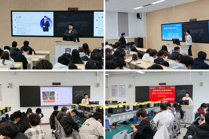 一小时的讲座干货满满、催人奋进,现场掌声不断。讲座结束后,王进工程师移步至躬行楼电工电子实训室,以电梯安全为核心开展了一堂生动的实操教学课,将安全理念转化为具体的实操技能指导。实训现场,王进工程师结合电梯实际设备,围绕电梯安全运行的核心要点,从安全接触器的接线规范、触点粘连检测回路的安全调试、电梯检修模式的安全操作流程,到电梯改造中的安全防护要点、现场作业的安全注意事项等内容展开细致讲解与现场演示。他手把手指导同学们进行安全实操练习,针对同学们操作中可能出现的安全隐患及时指正,耐心解答大家在电梯安全操作、安全检测等方面的疑问,着重强调“安全无小事,操作讲规范”,要求同学们将安全准则刻入心中、落到手上。同学们在沉浸式学习中掌握电梯安全实操技能,进一步加深了对电梯专业安全核心的理解与认知。