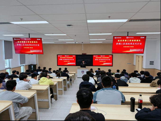 为大力弘扬劳模精神、劳动精神、工匠精神,引导金沙官网学子树立正确的职业观、就业观,筑牢技能成才、技能报国的理想信念,4月8日下午,未来工匠学院特邀苏州技能大奖章获得者、机械工程工程师、远志科技非标项目主管王进,在躬行楼开展题为“一名电梯工程师的基层就业成长之路”的专题讲座。智能制造学院学生到场聆听,在榜样的故事中汲取奋进力量。