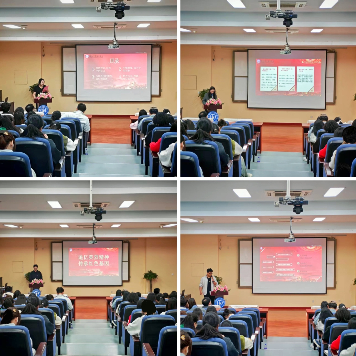活动在雄壮的国歌声中正式启幕。本次主题紧扣英烈精神的核心内涵与时代价值,由入党积极分子代表依次上台分享。分享人饱含深情地回顾了杨靖宇、黄继光、邱少云、董存瑞等革命英烈的感人事迹,并重点讲述了“八女投江”等巾帼英烈的悲壮故事,生动再现了青年英烈以生命赴使命、用热血铸忠诚的光辉历程。现场同学认真聆听、深受触动,进一步理解了英烈精神所蕴含的爱国情怀、民族气节、无私奉献与坚定信仰,在铭记历史中筑牢思想根基,在缅怀英烈中补足精神之钙。